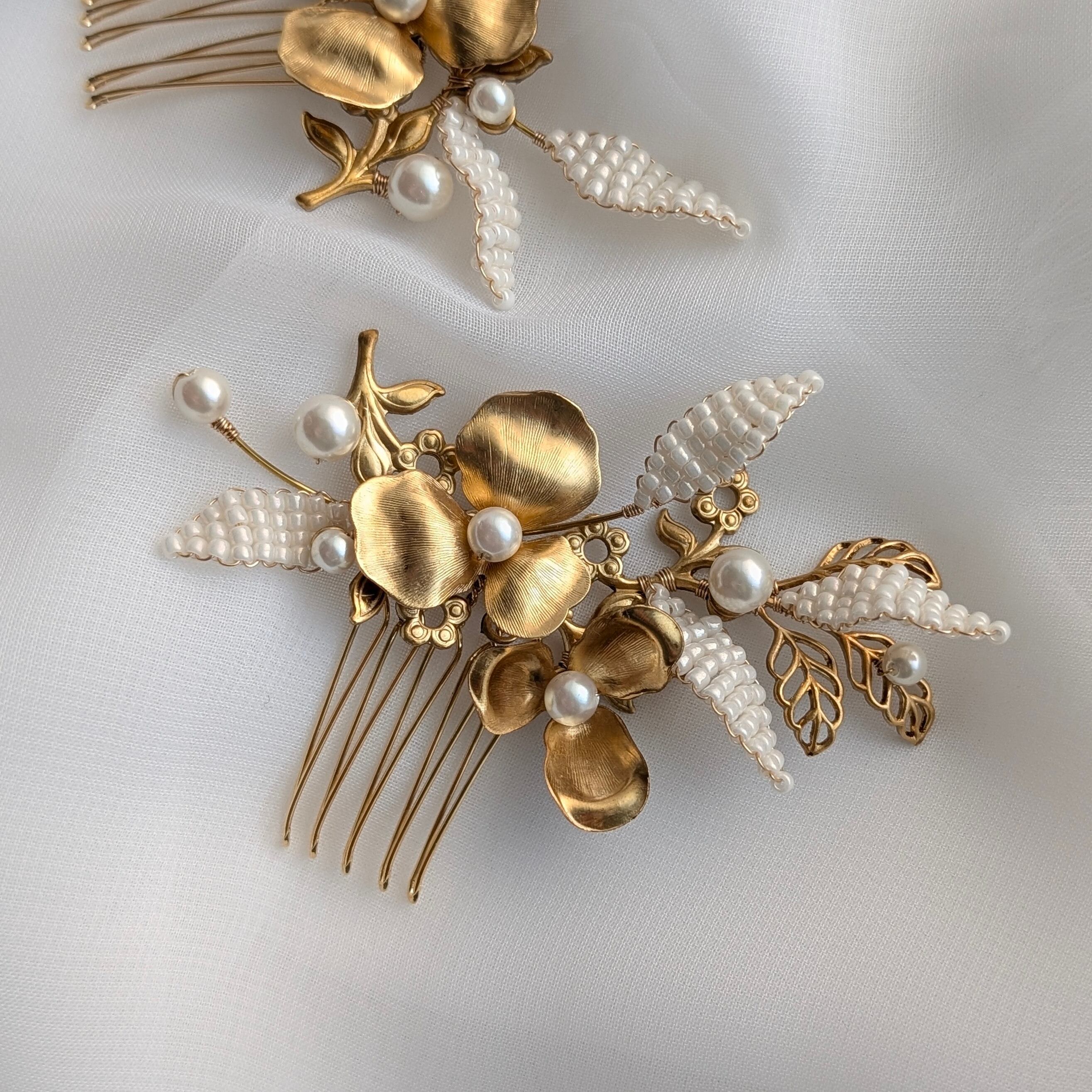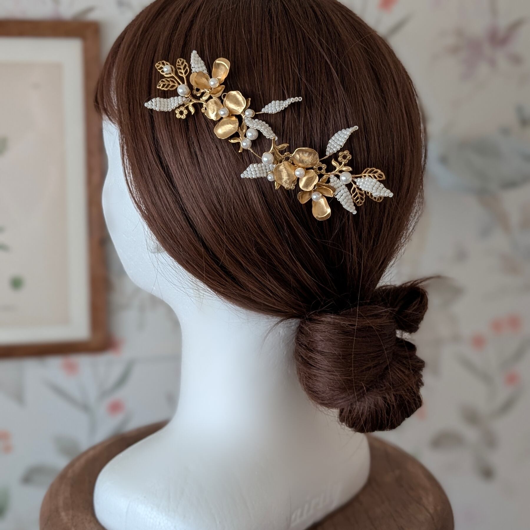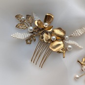 ゴールドフラワーとビーズリーフを